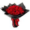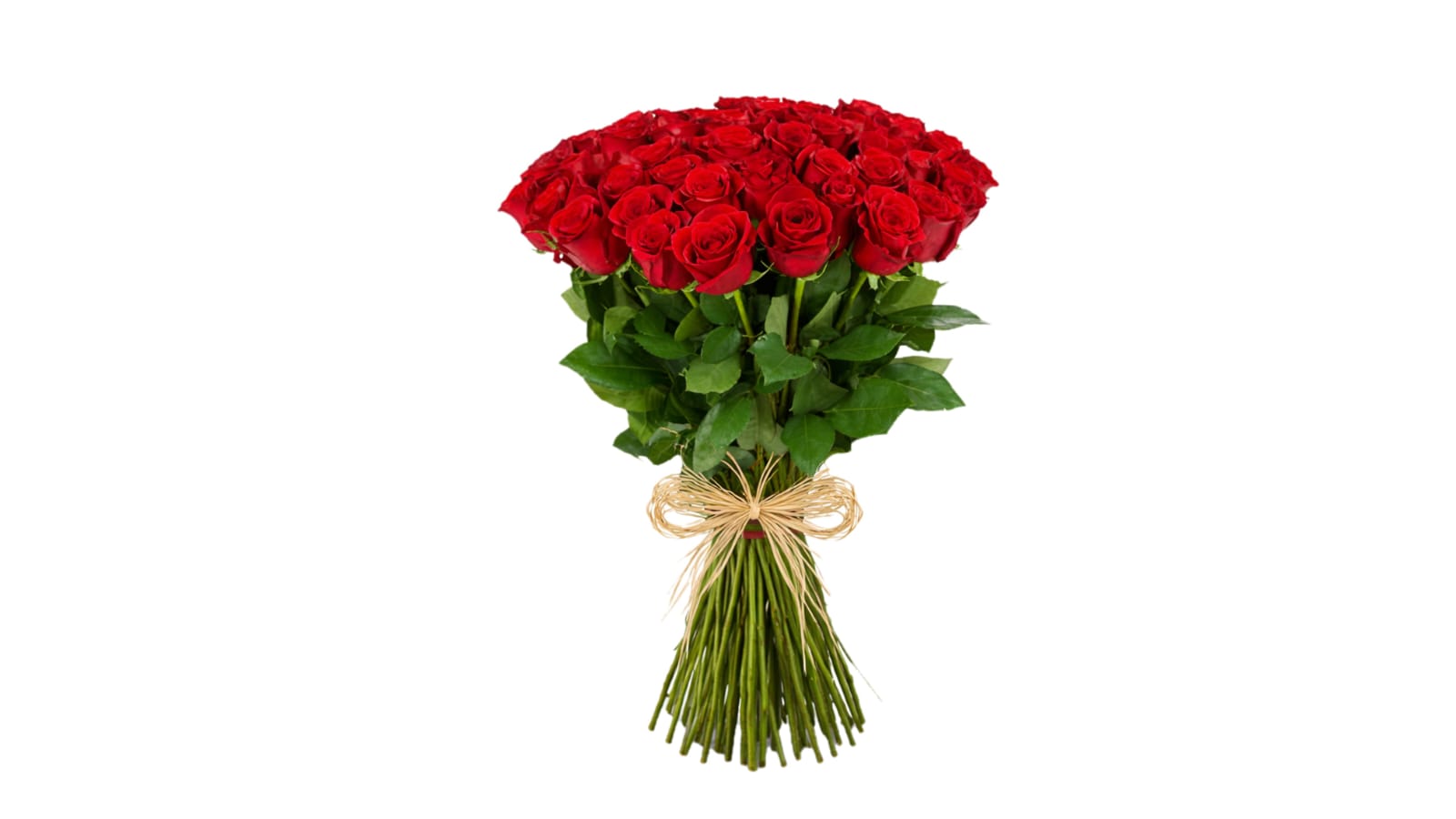 The flowers are tightly bundled with green stems, tied together with a natural raffia .